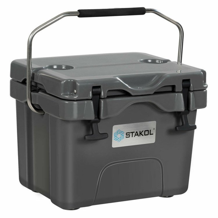 16 Quart 24-Can Capacity Portable Insulated Ice Cooler with 2 Cup Holders
